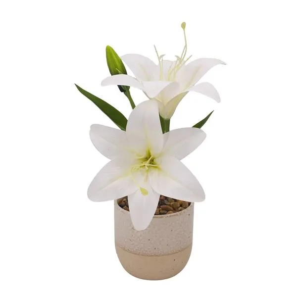 Hot Sale Fake Plants Indoor Home Decoration White Greenish Lily Flower Premium Artificial Flowers Potted For Mother’s Day
